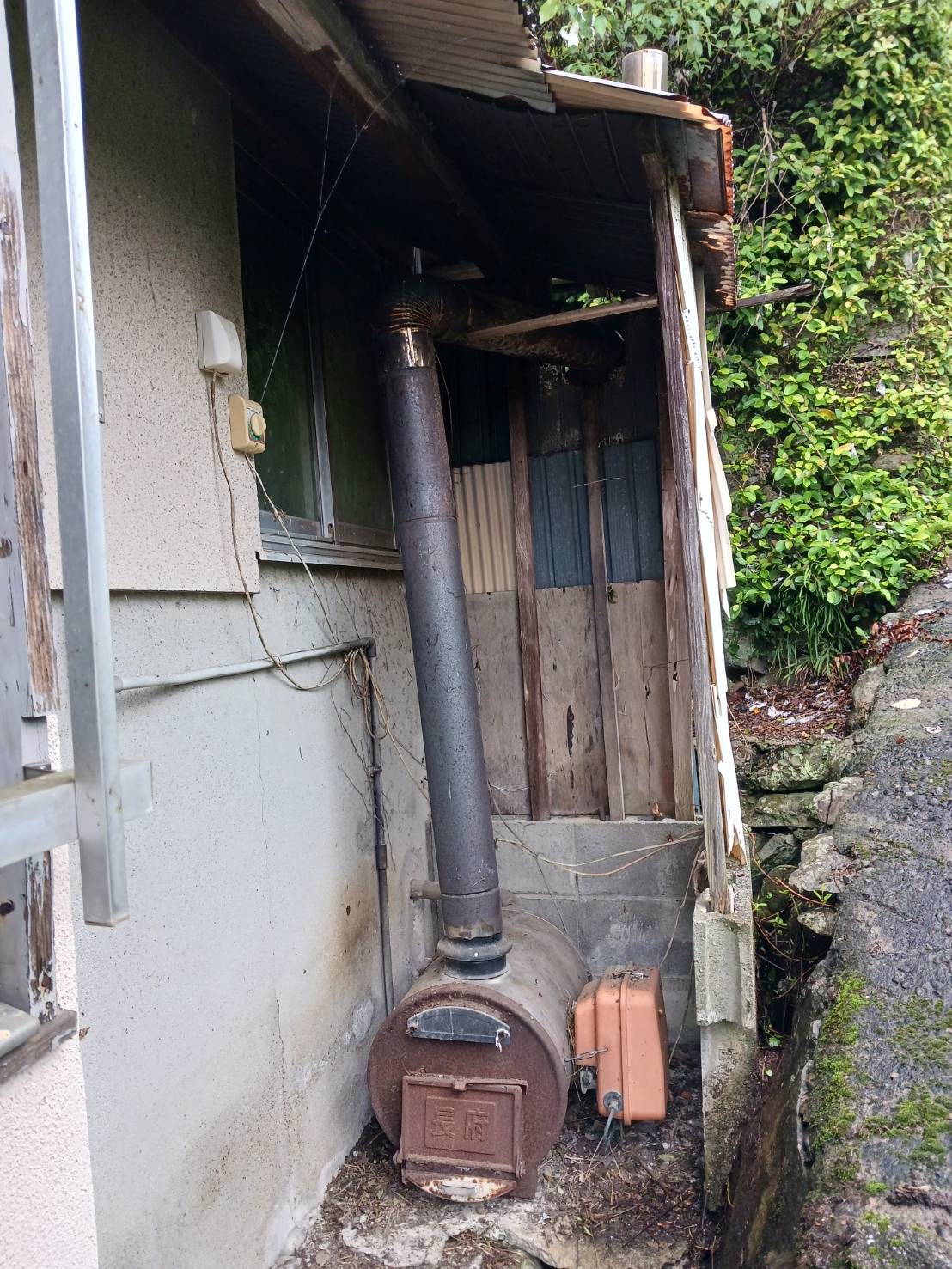 風呂沸かし施設:薪風呂窯、天日